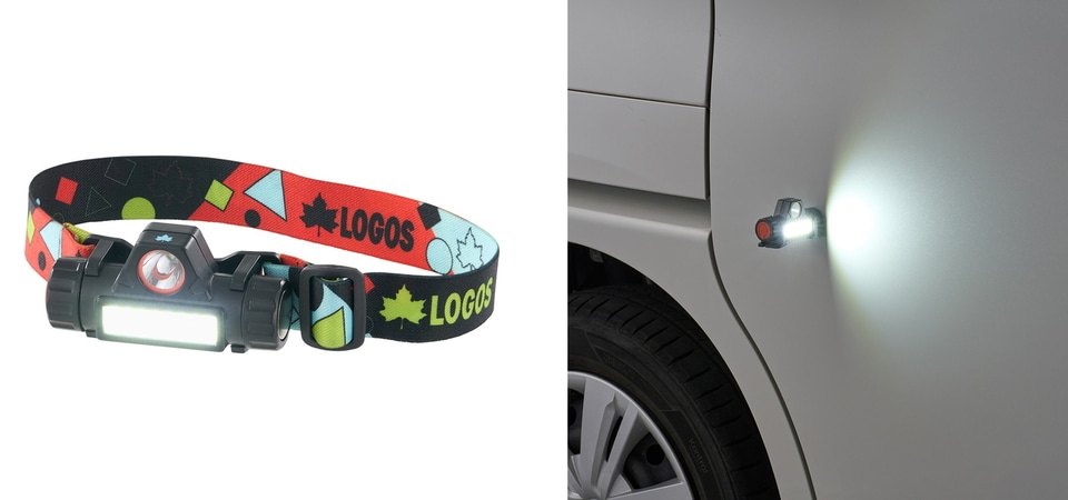 暗い場所でも両手を塞がずに足元や手元を照らすことができるヘッドライト。用途に合わせて明るさを調節できるほか、子供も扱いやすいシンプルな操作設計に加え、家族で使いやすいLOGOSオリジナルデザインを採用した。