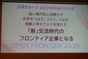 JTBは1月15日、JTBグループ長期ビジョン「OPEN FRONTIER 2035」記者発表会を実施し、代表取締役 社長執行役員の山北栄二郎氏が今後の取り組みについて説明した。