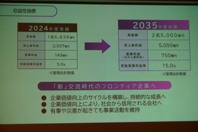 初めて発表する長期ビジョンは2035年の「ありたい姿」を示すもので、具体的な事業内容については中期経営計画(直近は2026年~2028年)で定めるとのこと。
