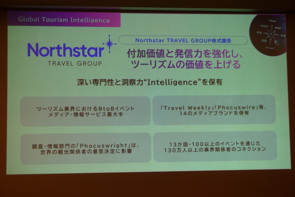 事業ポートフォリオ(事業利益ベース)としては、グローバル比率を2024年の14.0%から2035年には50.0%まで拡大。戦略の1つとして、2025年8月にはツーリズム業界におけるB2Bメディア企業の最大手である「Northstar Travel Group」の株式を譲受している。