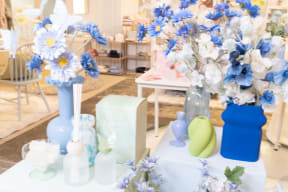 ほかにも、春コレクションのテーマである「花」や「蝶」をモチーフにしたリビングアイテムとして、新生活のお部屋が華やぐ「アートフラワー」(600円~)や「フラワーベース」(2200円~)、107種類もの「クッションカバー」(2500円~)などが登場。