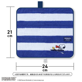 タオル素材の「どっとポーチ」にスヌーピーデザイン。シンプルなボーダー/ドット柄など全6種
