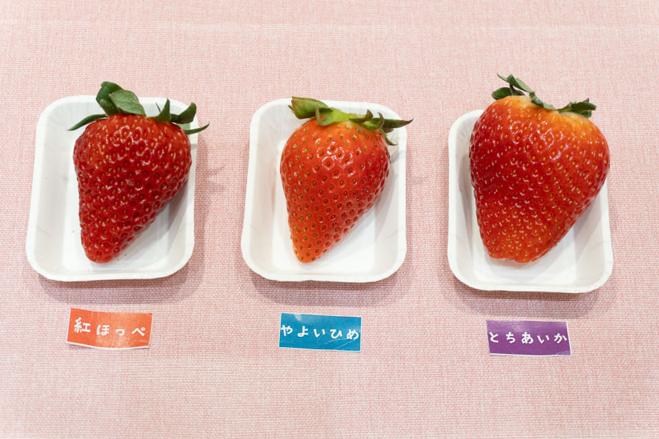 今、市場に出回っているいちごは“二番果”といって「この時期のいちごがもっとも美味しい」という。クリスマスやお正月の時期に出回るいちごは、最初に植えられた“一番果”(初夏に植え、11月ごろ収穫)。2回目に植えられる二番果(真夏に植え、1月以降に収穫)は、この1月20日前後をピークにより甘味が強く、食感も柔らかく成長するそうだ。