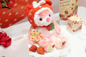 グッズでは、Maison de FLEURの「いちごフリルハンドルスクエアトートバッグ」(各8800円)、コトモノマルシェの「ダブルいちごピアス/イヤリング」(各4180円)、ご当地ピンズプラスの「静岡ストロベアぬいぐるみ」(4070円)などがラインアップ。