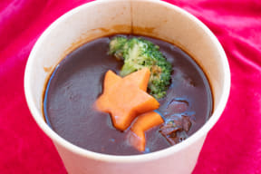 色鮮やかないちごやチュロス、シュークリームなどを添えたチョコレートフォンデュ(1600円)や、数量限定マグ付きホットチョコレートドリンク(1800円)のほか、赤ワイン香る濃厚ビーフシチュー(900円)、きのこの旨みたっぷりポルチーニのリゾット(1000円)といったあったがグルメの屋台がずらり。