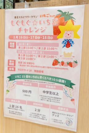 東京スカイツリータウン広報事務局 原島明子氏によれば、これまでも冬の時期にはいちごフェアメニューを店舗ごとに販売してきたが「年々いちごの人気が高まっているなかで、もっと体験や参加型でお客さまに楽しんでいただきたいと考え、新しいイベントを導入し、規模や内容をパワーアップした」という。