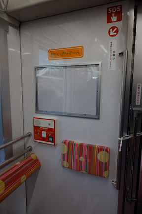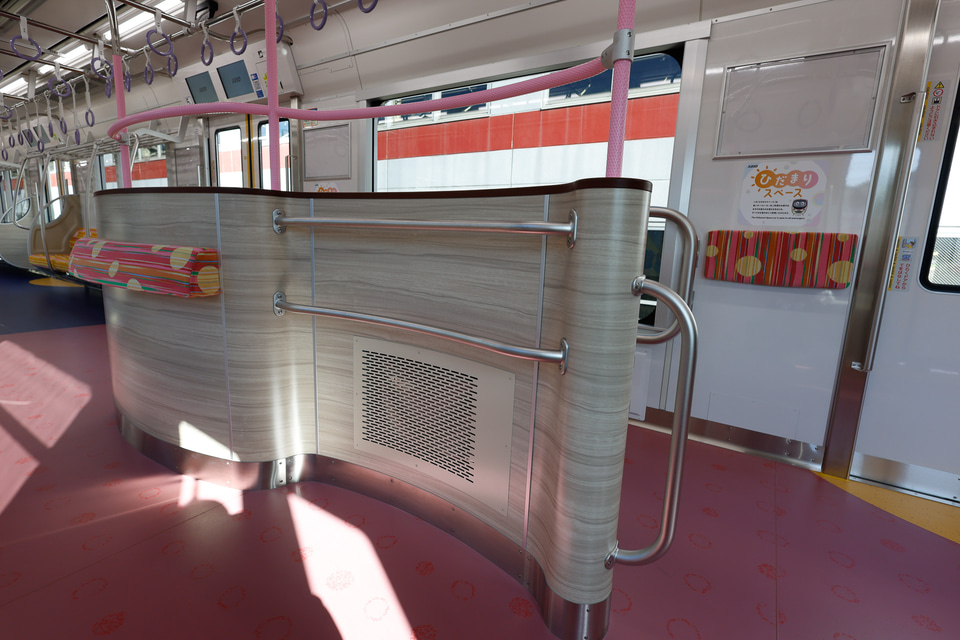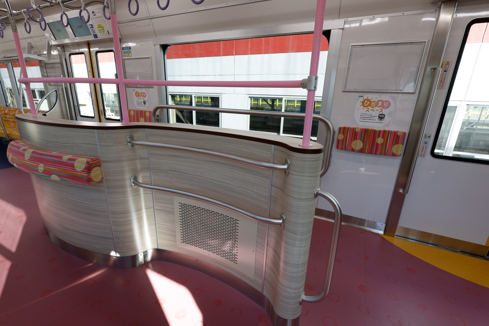 いうまでもなく、京王2000系における最大の「ウリ」は、5号車に設置する多目的スペース「ひだまりスペース」である。