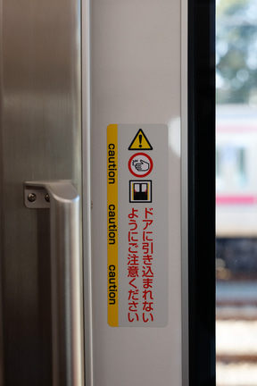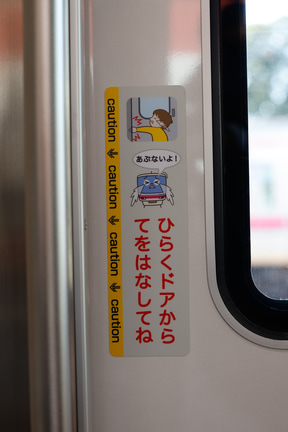 「ひだまりスペース」ばかりが注目されがちだが、意外なところに、お子様向けの配慮があった。側扉に設けられた、引き込まれ防止の注意喚起である。