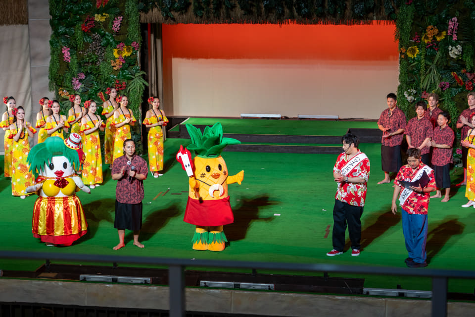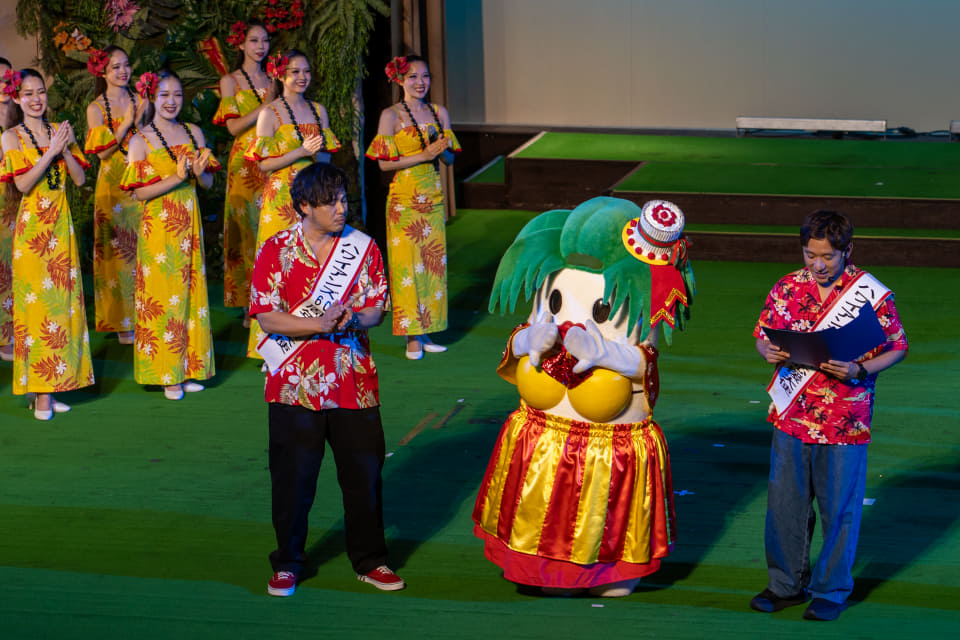 セレモニーには、スパリゾートハワイアンズ・ダンシングチームとファイヤーナイフダンスチームの「シバオラ」メンバー、オリジナルキャラクターの「CoCoネェさん」が集結し、ステージはこの上ない豪華な雰囲気に。