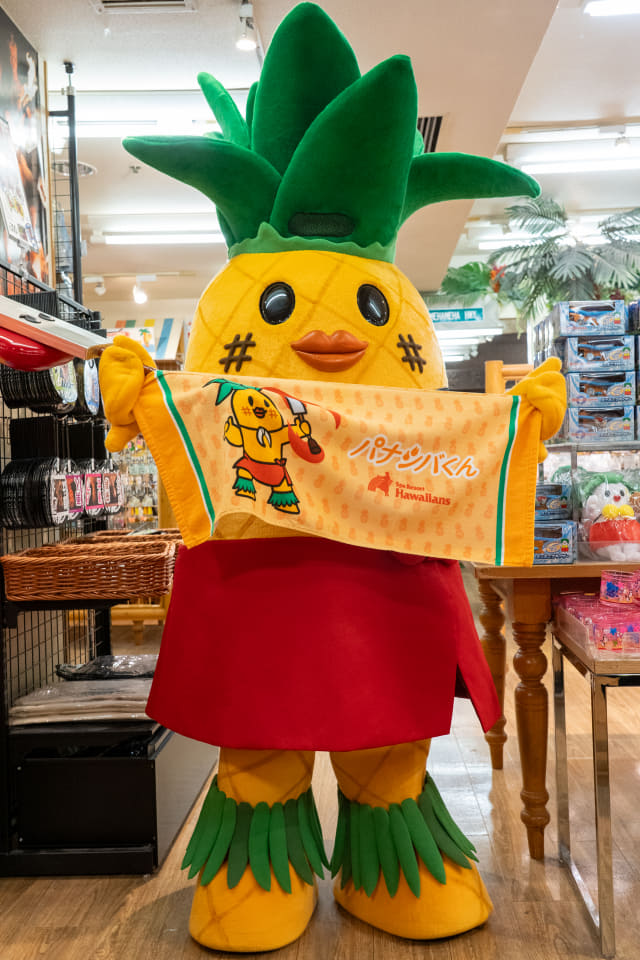 館内最大のお土産売り場ハワイアンズマーケットでは、早くも新キャラクター「パナシバくん」グッズ売り場が登場し賑わっていた。