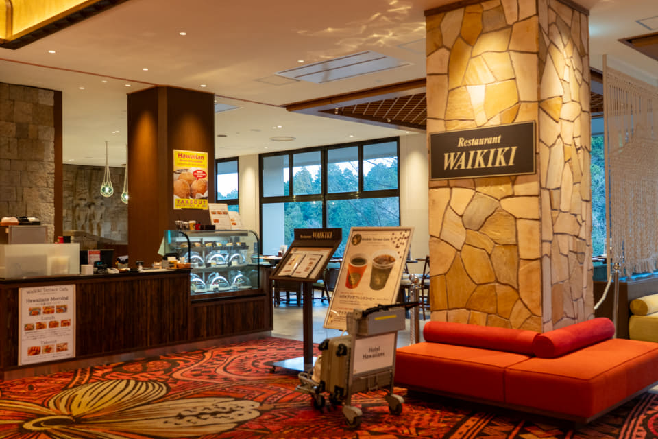 そのロビー横に2025年12月、メニューも一新してリニューアルオープンしたのが「ワイキキテラスカフェ」。以前はランチタイムだけだったのが朝食やティータイムも利用できるようになった。