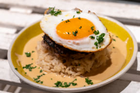 シグネチャーメニューは「プレミアムロコモコ」。カラフルなレインボーケーキやハワイのローカルスイーツ・マラサダなどを提供する。ちなみにリピーターによると、ここのオリジナルブレンドコーヒーは美味しいと評判とのこと。
