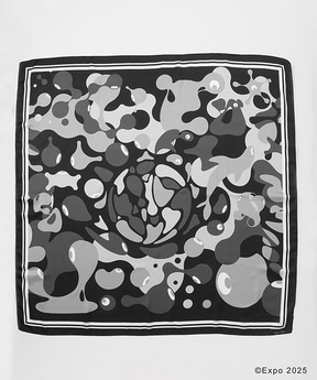 万博コラボアイテム第2弾は、モノトーンカラーのミャクミャク・こみゃく(デザインエレメントID)をデザイン。日常使いしやすいトートバッグやスウェットシャツ、コーディネートのアクセントとなるニットキャップやスカーフなどを展開する。