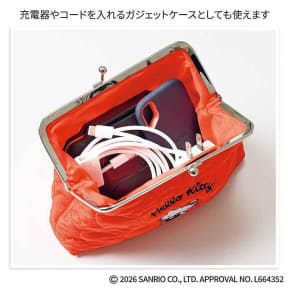 増刊号の付録は、りんご柄のキルティング生地がかわいい「ハローキティ」の刺繍入りがま口ポーチ。バッグの中に入れても映える鮮やかな色合いで、がばっと大きく開くがま口仕様。サイズは約20×4×11.5cm(幅×奥行×高さ)とマチもしっかりあるので、見た目以上にモノが入る。コスメポーチや、充電器やコードを入れるガジェットケースとして使うのもお勧めという。