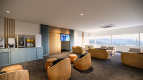 世界新三大夜景にも選ばれた長崎市の中心部からほど近い立地にあり、滞在中自由に過ごせる新設の「プレミアムラウンジ」ではその美しい夜景をより味わえる空間に演出。どの席からも眺望が楽しめ、生ビールなどのアルコール類を含む無料のドリンクバーも利用できる。