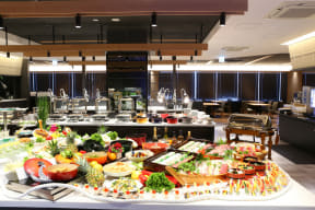 食事は、大きな窓から夜景や市街地を一望するレストランにて大江戸温泉自慢のプレミアムバイキングが楽しめる。厳選食材を使った和洋中メニューや季節料理に加え、長崎県産ヒラマサのお造りや焼きたての佐世保名物レモンステーキ、皿うどん、トルコライスといったご当地グルメをラインアップする。