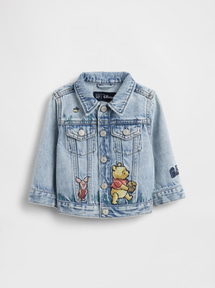 ラインアップは、プーさんとピグレットの刺繍が大きく施された「アイコンデニムジャケット」(8990円)やスナップボタン付きの「デニムオーバーオール」(7990円)、GAPロゴとプーさんが融合したくま耳フード付きの「ヴィンテージソフトパーカーセット」(6990円)など。
