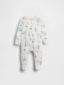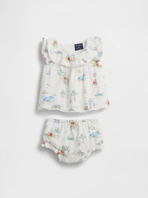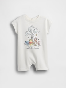Gap、ベビー新作「くまのプーさん」。デニムオーバーオール/コットン総柄セットアップ/耳付きバケハほか