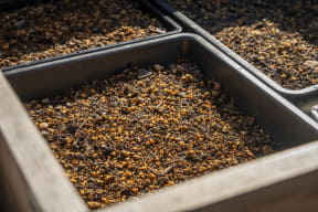 竹をふんだんに使用した施設は、建築家・隈研吾氏によるもの。自然環境にも配慮し、植物園では焼酎造りで発生する蒸留温排水の熱エネルギーを活用するほか、施設で使用する電力は「サツマイモ発電100%」で運営。都城市内のスターバックス2店舗から出るコーヒー抽出後のコーヒーかすも、icoiaの電力となるサツマイモ発電に活用することを予定している。