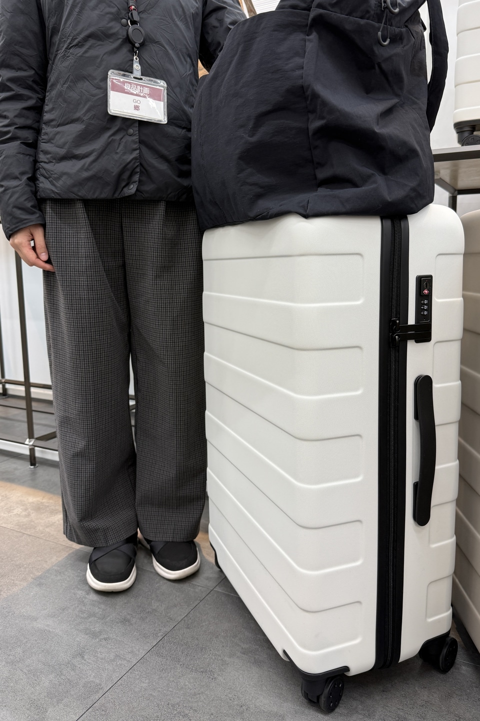 キャリーケースにはステッカーやシールを本体に貼る人も少なくないが、良品計画の社内では引き手にバンダナを巻くなど、気分が変わったときに元に戻せる目印を付けている人が多いそう。一言でいえば、長く使える「機能としてのデザイン」にこだわったという。