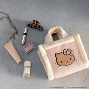ヒョウ柄リボンを身につけた同誌限定デザインのハローキティが、淡く優しいシェルピンク色のバッグになって登場。触り心地がふわふわしたムートン風の生地と、白いボア素材のあしらいが特徴となっている。サイズは約18×8×18.5cm(幅×奥行×高さ)。マチ幅たっぷりで見た目以上にモノが入るので、日常使いやお出かけにちょうどいい。