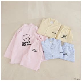 ラインアップのひとつ「アソートガラSETUP」(8800円)は、ちいかわたちがすやすやと眠る姿をデザインしたパジャマセット。ストライプ柄とギンガムチェックの優しい色合いで、オーバーシルエットのシャツとハーフパンツでリラックス感のある着心地に仕上げた。