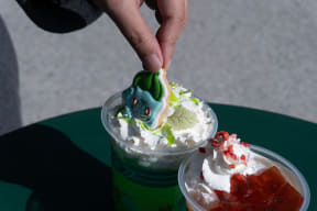 提供時には、モンスターボール柄の袋に入ったポケモンのアイシングクッキーが一緒に提供されるので、自分で仕上げのトッピングをして味わおう。