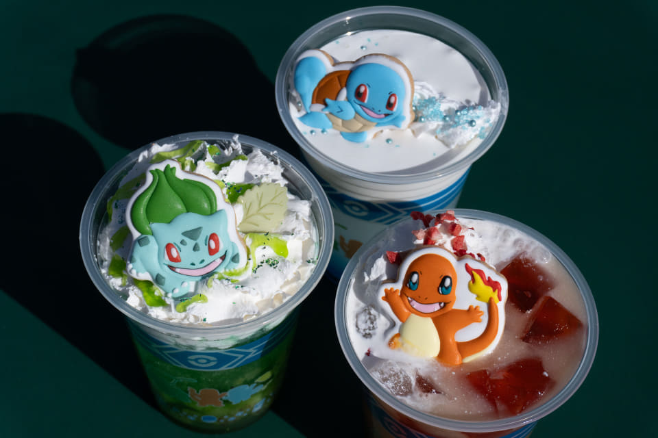 中心街・カヤツリタウン内にある「フレンドリィショップ」では、ポケモントレーナーの旅の疲れを癒やすオリジナルドリンクを販売。フシギダネ・ヒトカゲ・ゼニガメがわざを出している様子をイメージした全3種類あり、キウイ風味のメロンソーダ「フシギダネのはっぱカッタードリンク」、ストロベリー風味の紅茶をベースにした「ヒトカゲのひのこドリンク」、爽やかなレモン風味とミルクフォームがリッチな「ゼニガメのみずでっぽうドリンク」のなかから選べる。