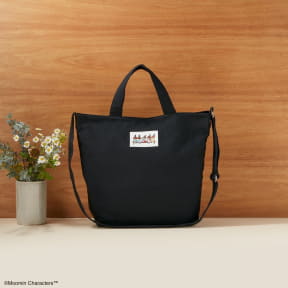 シックな黒地に「ムーミン」のリトルミイときょうだいたちのレザー調タグをあしらった、シンプルで使いやすい大人カジュアルな2WAYショルダーバッグ。シーンに合わせて手持ちと肩掛け・斜め掛けを使い分けできる。