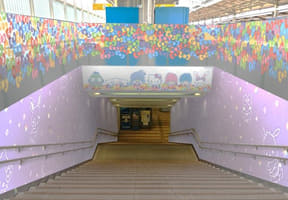 案内サイン類は方面別に異なる色分けとし、視認性の向上を図る。キャラクターの数も増やし、新たにバッドばつ丸やポチャッコなどを加えた14のキャラクターが登場する。
