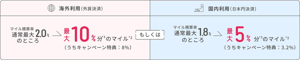 キャンペーンサイトからエントリーしたうえJAL Payを利用、JAL NEOBANK円定期預金(6か月もの)を50万円以上預け入れて満期を迎えると、JAL Payのマイル積算率が国内利用で+3.2%(最大5%)、海外利用で+8%(最大10%)アップする。