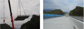 閼伽流山トンネルでは、トンネル底面をコンクリートで結合させ安定性を向上させる補強工事を実施。和美沢橋では傷んだコンクリート床板を新しいものに取り替え、橋りょうの長寿命化と耐久性の向上を図る。