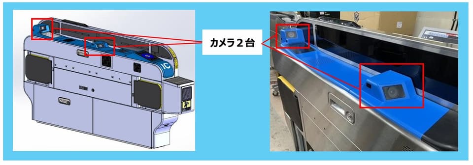 新しい改札機は既存のIC専用機の改造で、上面にカメラを2台設置して認証精度を向上。従来機の改造で導入可能ながら、ICカードと顔認証の両方に対応する点がポイントとなっている。