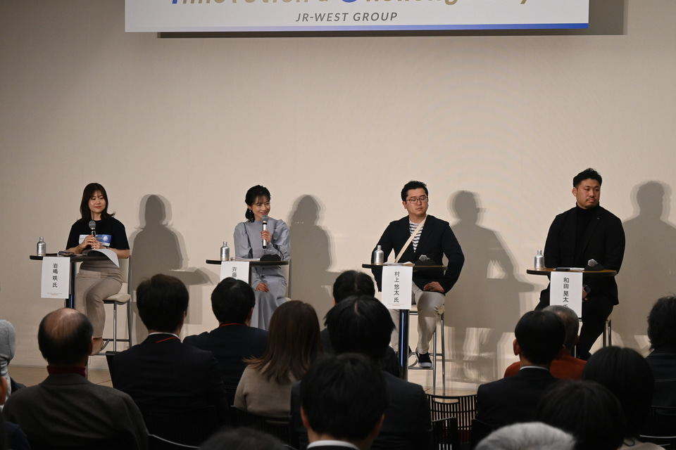 この講演で語られたのは、「鉄道ファンに“推される”鉄道会社のあり方」。鉄道ファンとして知られるタレントの斎藤雪乃さん、鉄道写真家の村上悠太さん、日本旅行の和田晃太さんが登壇した。そして、JR西日本での運転士経験があるJR西日本イノベーションズの岩嶋咲さんからは、運営に携わる鉄道専用SNS「Railil(レイリル)」を通じた、鉄道ファンと鉄道会社の交流の在り方も語られた。