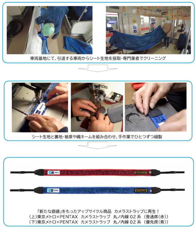 東京メトロ、丸ノ内線02系のシート生地をカメラストラップに。PENTAXから計460本限定