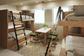 洗濯機やキッチンなどの家電類を設置し、長期滞在や多人数宿泊に対応する施設として展開。一般的なホテルでは受け入れにくいインバウンドのファミリー・グループ層をターゲットとし、2030年までに10施設の開業を目指す。