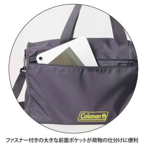 デザインは家族やパートナーと共用しやすい落ち着いたグレーカラーで、重たい荷物でも安心のショルダーストラップ付き。さらにファスナー付きの大きな前面ポケットが備わり、すぐに取り出したい小物類を分けて収納できる。