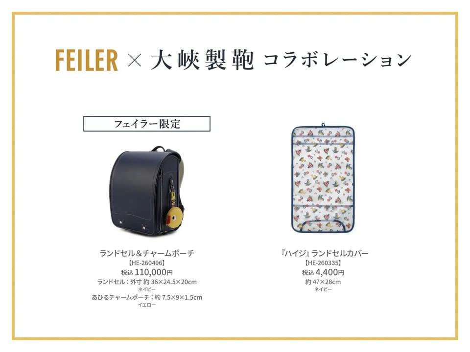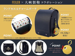 フェイラージャパンは、「〈大峽製鞄〉×〈フェイラー〉ランドセル&チャームポーチ」を5月1日に発売する。価格は11万円。