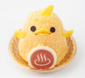 「ぴよりん」のフェア限定フレーバーとして、「温泉ぴよりん」が登場する。オレンジとキャロットのジュレを使ったさわやかな味わいで、温泉で温まったようにほんのり赤みがかった色合いもポイント。
