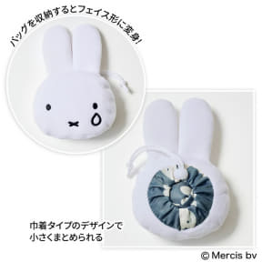 特別付録は、オリジナルデザインの総柄がかわいい「ミッフィー」のエコバッグ。ミッフィーの泣き顔がかわいい巾着ポーチ一体型で、コンパクトに収納できる。広げると大きめサイズ(約42×15×35cm)でマチもたっぷり。