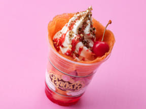 「パルパルーザ・パルフェ」とは、自分で組み合わせて好みのメニューやグッズが作れるというもの。レストラン「アイスクリームコーン」では、ベース、ソース、トッピングの3カテゴリーから1つずつ選び、それぞれ組み合わせることができる。