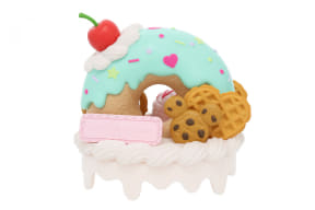 ショップ「ペイストリーパレス」では「パフェカップ」(2600円)または「ポーチ」(2200円)を選び、好みのスイーツ10個を選んでキュートなセットを作れる。期間により手に入るカップとポーチのカラーやデザインが異なり、詰めることのできるスイーツも期間により変わるので楽しみにしておこう。