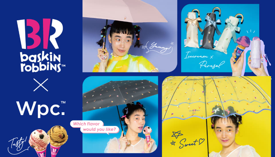 ワールドパーティーが展開する傘ブランド「Wpc.(ダブリュピーシー)」は、サーティワン アイスクリームとの初コラボアイテムとして、折りたたみ日傘とビニールを発売した。Wpc.公式オンラインショップ、Wpc.直営店舗、全国の雑貨店(LOFT、ハンズ、PLAZAほか)で取り扱う。