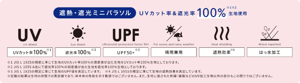 Wpc.の日傘は、UVカット率100%、遮光率100%、UPF50+の生地を使用し、はっ水加工も施した晴雨兼用タイプ。ビニール傘は、生地の縁に“なみなみ”パイピングを施し、よりポップでかわいい印象に仕上げている。