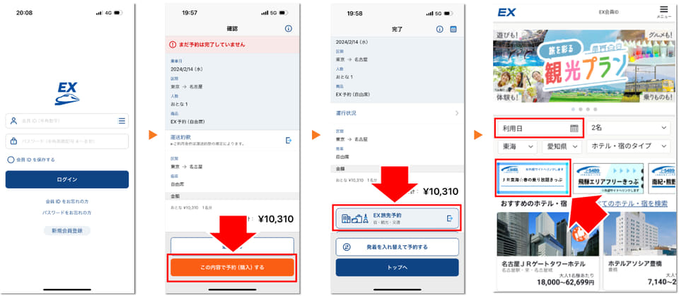 料金は3900円(小児1900円)。熱海駅~米原駅間の各駅着となる東海道新幹線のきっぷをEXサービスで予約した人に対してのみ発売する商品で、新幹線を予約後「EX旅先予約」に表示されるバナーから購入できる。利用時は、当日までにきっぷうりばまたは5489サービスの表示がある券売機での受け取りが必要。
