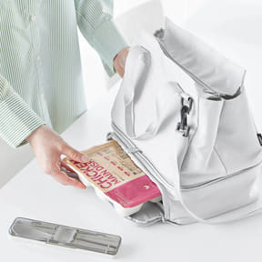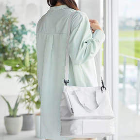 山崎実業、底にランチバッグを着脱できる2WAYバッグ。開口部は広々、汚れたら丸洗いOK