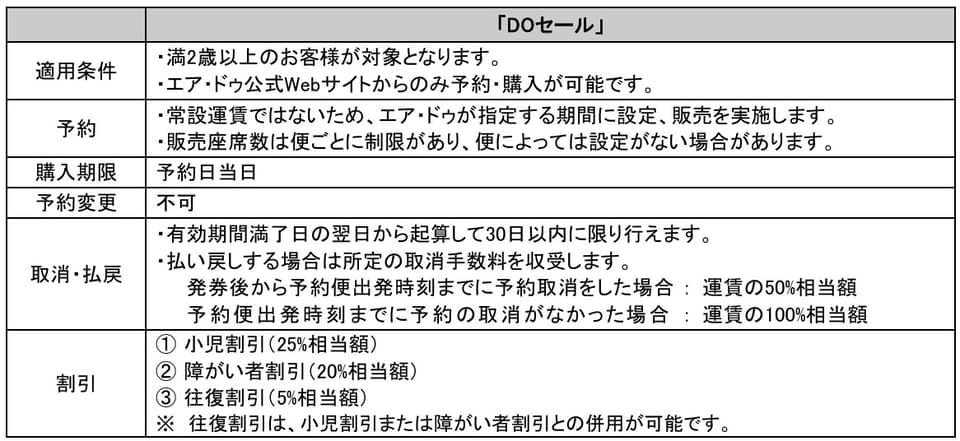 期間中、全路線を対象に7000円のDOセール運賃を設定(別途施設使用料)。便・席数には限りがある。