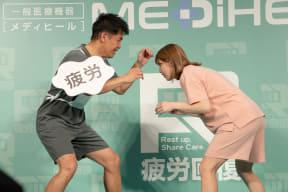 最後に武井壮さんは、「あれで53歳なのかよ、マジかって言われるようなパフォーマンス」を目指すうえでメディヒールが重要なサポート役になっていると話し、「日ごろの疲れを、今の吉田さんのタックルのように突き飛ばしていただきたい」とメッセージを送った。