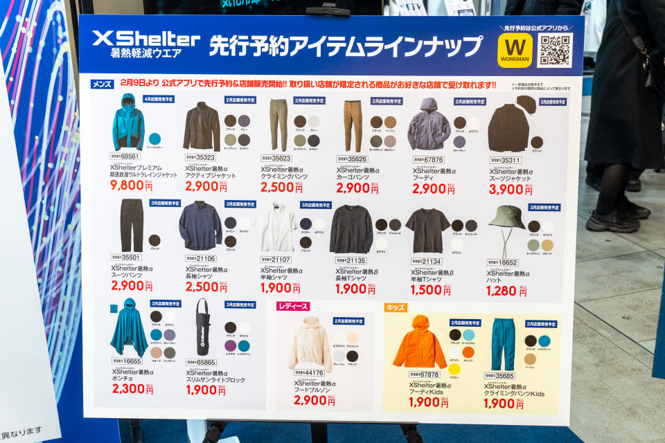 アプリ先行予約がスタートした2月9日、東京国際フォーラムで「WORKMAN 2026春夏 新製品発表会」が行なわれ、XShelterの新作含む主力アイテムがお披露目された。