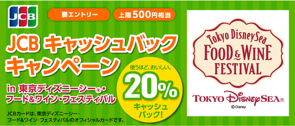 JCB、東京ディズニーシーで飲食すると最大500円相当キャッシュバック。「フード&ワイン・フェスティバル」期間